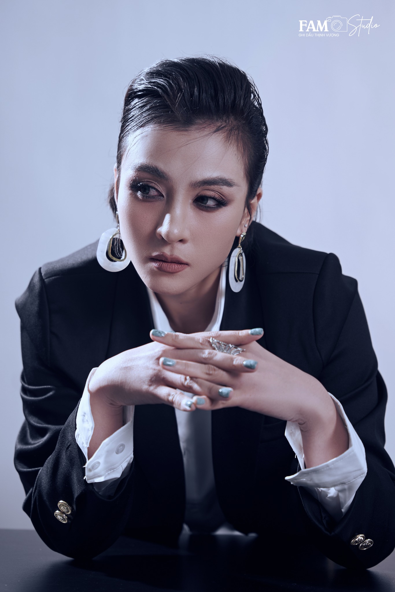 Concept sang trọng – thanh lịch: Tông màu trắng, be hoặc đen chủ đạo, trang phục công sở tinh tế, ánh sáng nhẹ giúp tôn vẻ đẹp trưởng thành và quyến rũ.