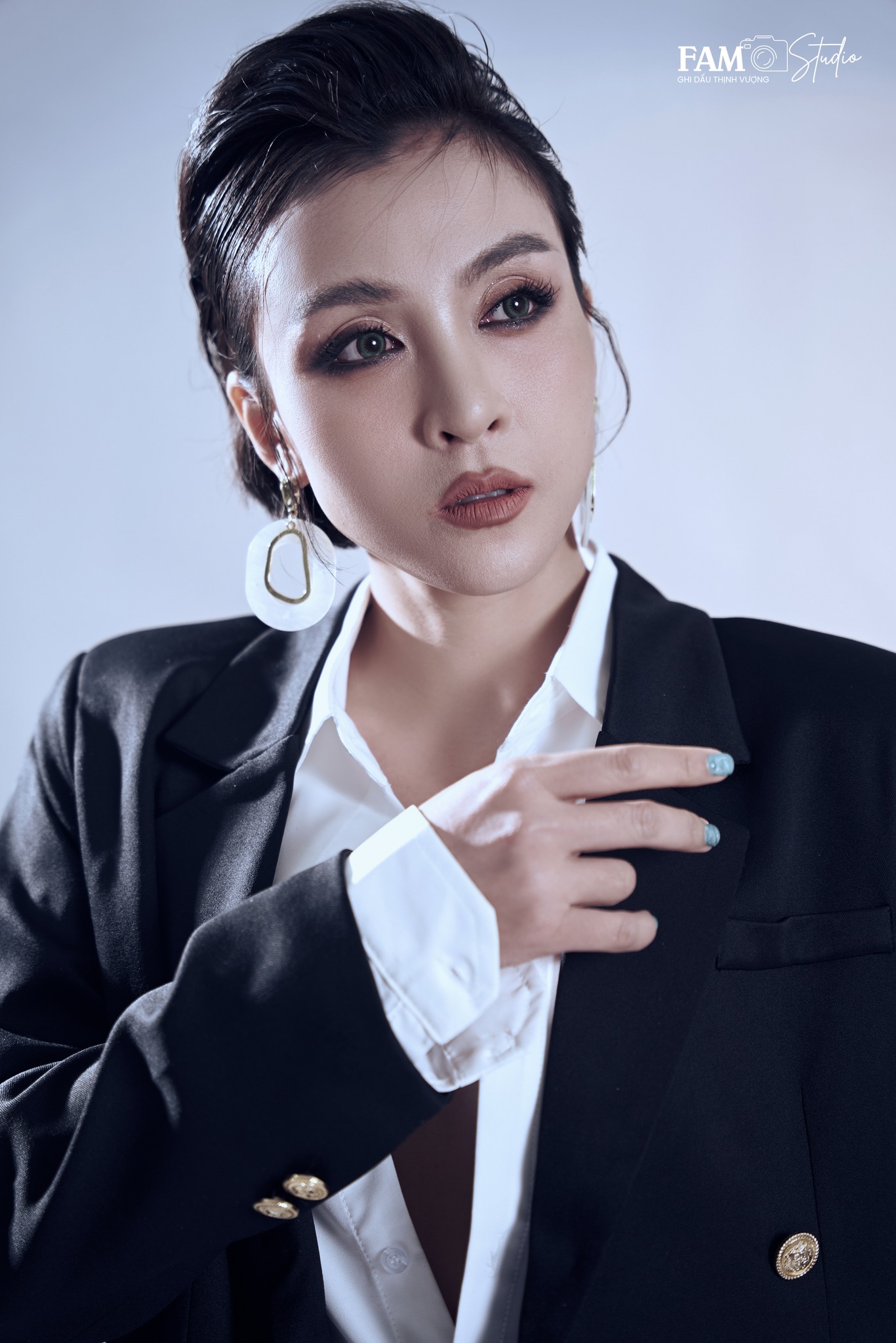 Trang điểm nên nhẹ nhàng nhưng sắc nét, tôn lên đường nét khuôn mặt và thần thái tự nhiên. Màu son đỏ trầm hoặc nude sẽ giúp hình ảnh vừa hiện đại vừa cuốn hút.