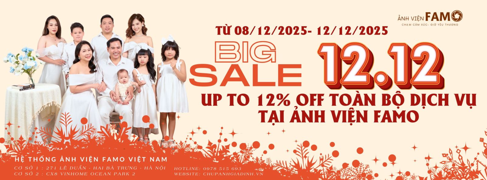 🎉 𝗦𝗨̛̣ 𝗞𝗜𝗘̣̂𝗡 𝗟𝗢̛́𝗡 𝗡𝗛𝗔̂́𝗧 𝗧𝗛𝗔́𝗡𝗚 𝟭𝟮 – 𝗕𝗜𝗚 𝗦𝗔𝗟𝗘 𝟭𝟮.𝟭𝟮 Đ𝗔̃ 𝗖𝗢́ 𝗠𝗔̣̆𝗧 𝗧𝗔̣𝗜 𝗙𝗔𝗠𝗢! 🎉 Từ 08/12 – 12/12/2025, Ảnh Viện FAMO dành tặng bạn ưu đãi khủng chưa từng có: ✨ Giảm đến 12% toàn bộ dịch vụ – nhận ngay ưu đãi, giữ trọn khoảnh khắc yêu thương! ✨